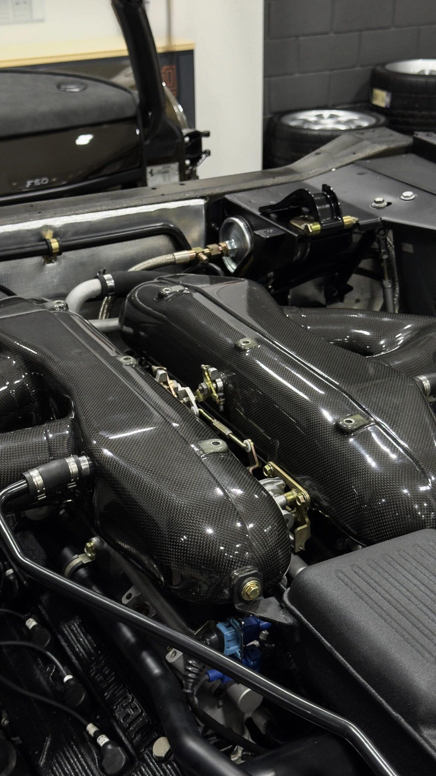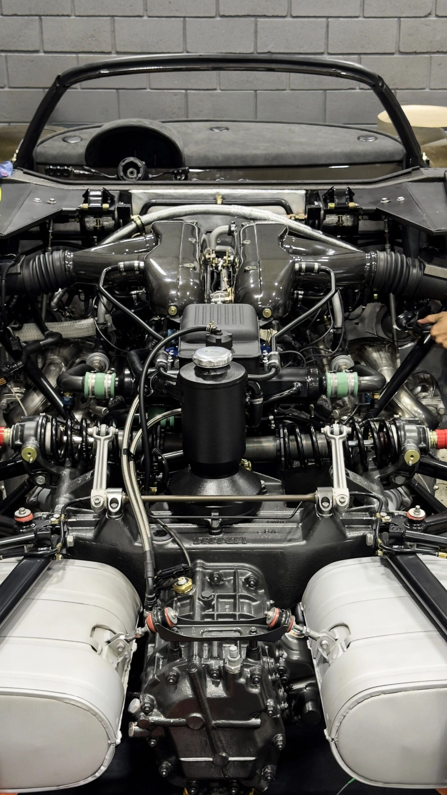 Directly inspired by Formula 1 technology, the F50 is powered by a 4.7-liter naturally aspirated V12 engine, derived from the Ferrari 641 F1 car — the same engine configuration used by Alain Prost during the 1990 season. The power unit is bolted directly to the carbon-fiber monocoque, serving as a structural component of the chassis — a groundbreaking concept for a road car at the time.